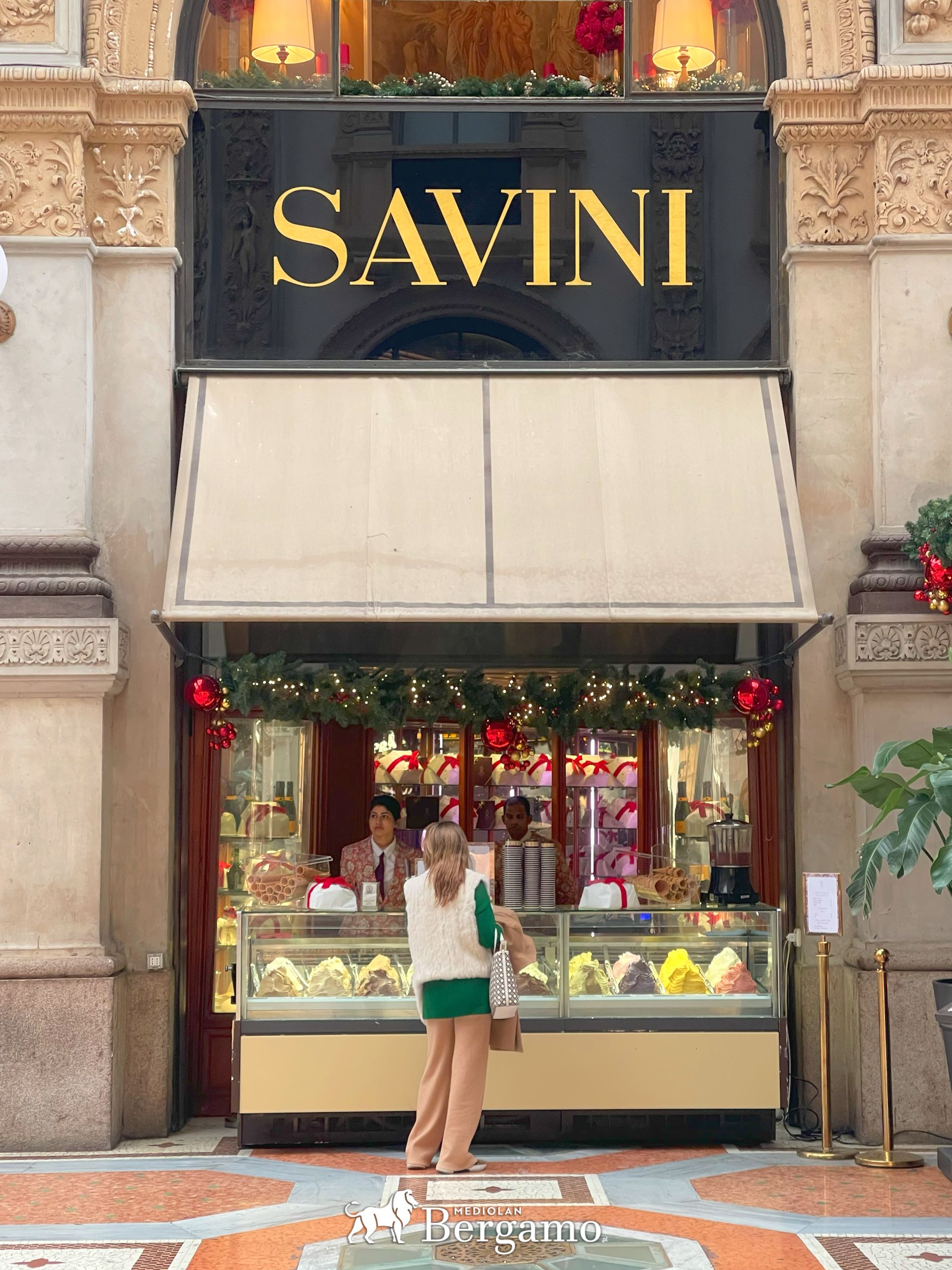 Kawa, nawet w luksusowej kawiarni Marchesi 1824 w Galleria Vittorio Emanuele II, kosztuje mniej niż kawa świąteczna na polskiej stacji benzynowej (1,60 EUR za espresso, 3 EUR za duże cappuccino, croissant za 2 EUR). Jarmark świąteczny? Tańszy niż w Krakowie.