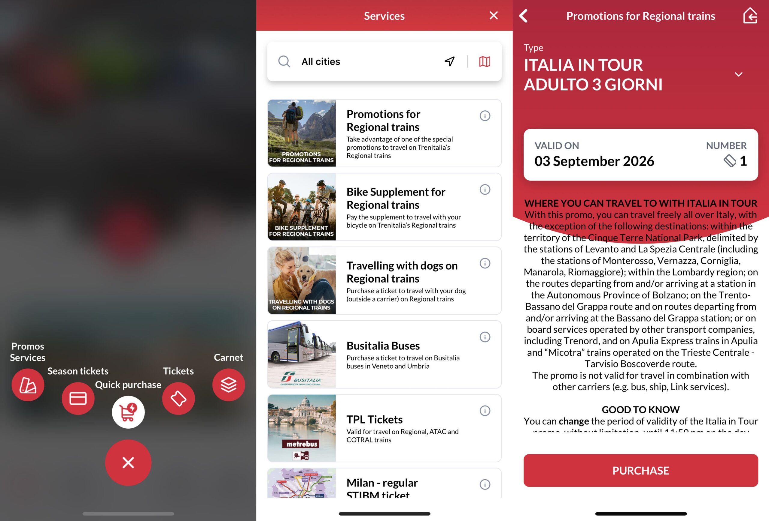 Bilet Italia in Tour należy kupować z minimum jednodniowym wyprzedzeniem. Nie da się go kupić dziś „na dziś”.