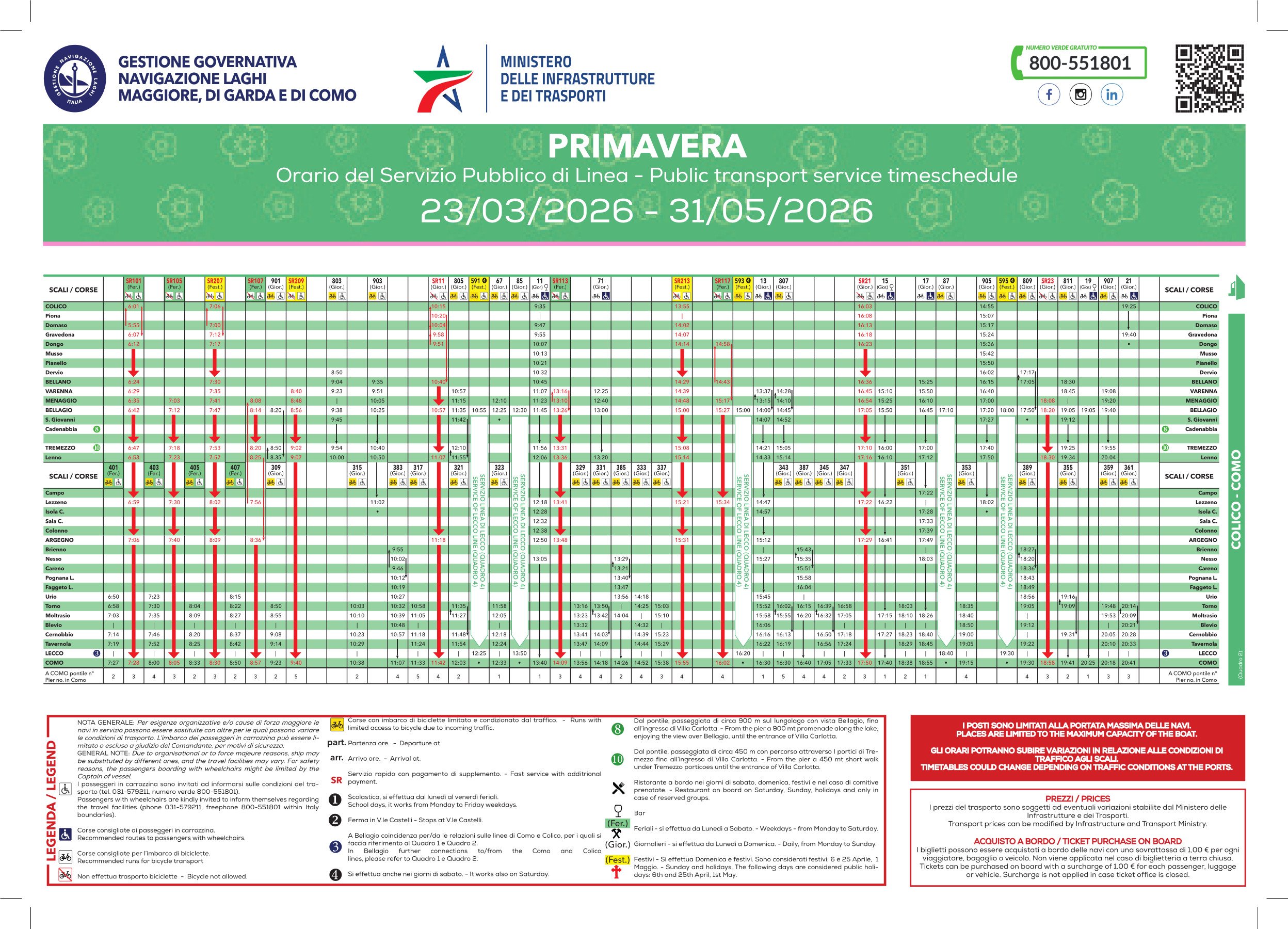 Żółte tło na rozkładzie oznacza święto i weekendy. Na pliku najniżej znajdziecie także rozkład promów samochodowych nad Como.