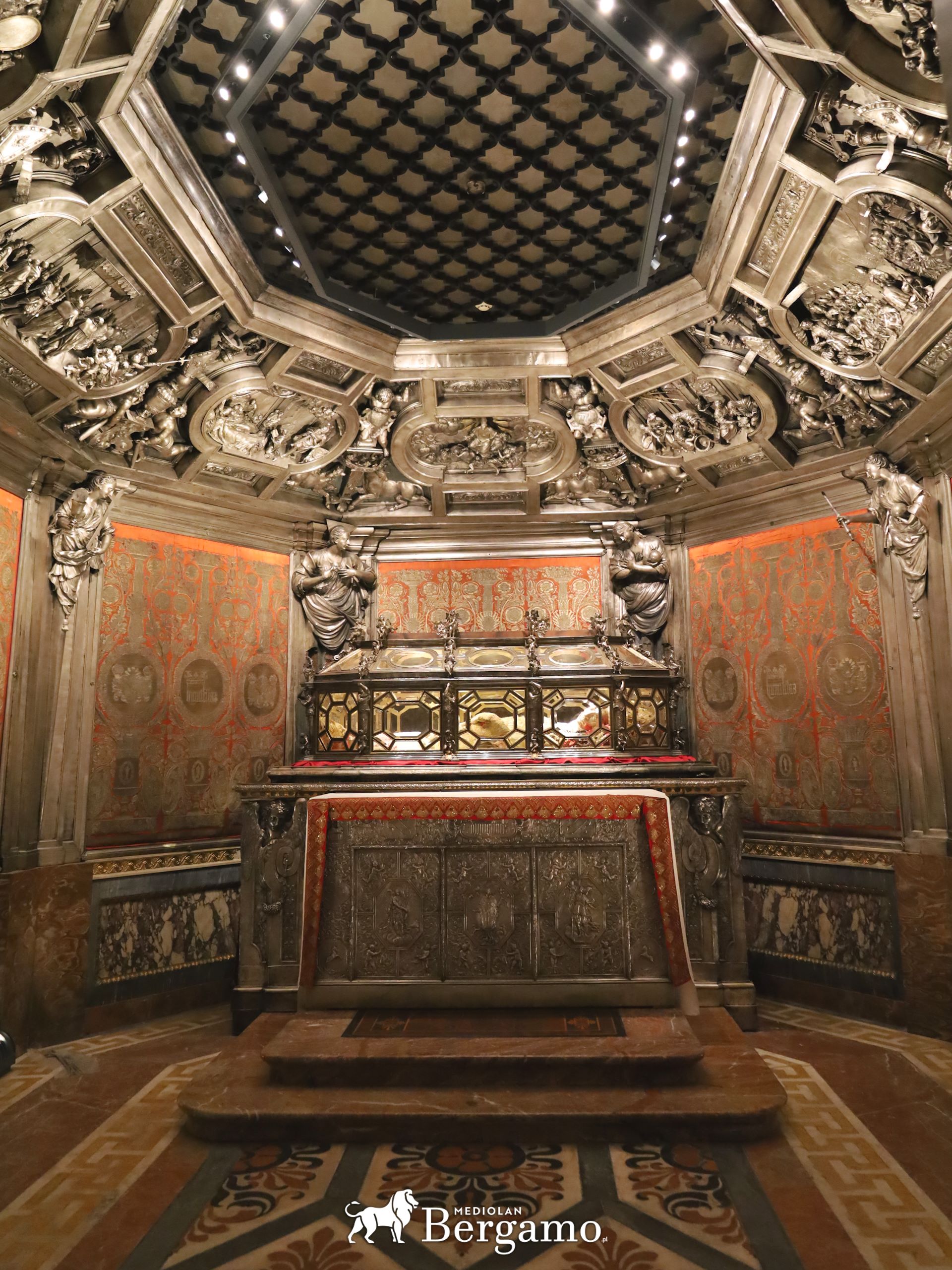 Katedra to też znajdująca się pod ołtarzem krypta św. Karola Boromeusza spoczywającego w kryształowej trumnie, którą zobaczycie powyżej. Jeśli kupujecie bilety to naprawdę warto dopłacić by zobaczyć to miejsce. Pod katedrą znajdują się pozostałości dawnej bazyliki Santa Tecla i baptysterium San Giovanni alle Fonti z IV wieku.