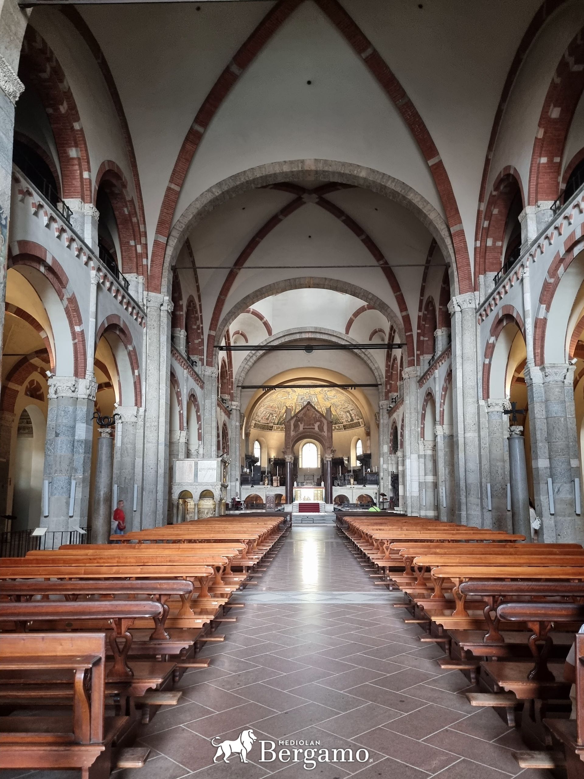 Pozostajemy w znajomej okolicy. Polscy turyści znają katedrę w Mediolanie ale o bazylice wie niewielu, a jeszcze mniej ją odwiedza. Bazylika św. Ambrożego (Basilica di Sant’Ambrogio) to jedna z najstarszych i najważniejszych świątyń w Mediolanie. Została wzniesiona w IV wieku na polecenie biskupa św. Ambrożego, patrona Mediolanu. Znajduje się w centrum przy Piazza Sant Ambrogio, dojedziemy tu metrem linii 2 lub 4 na stację Sant Ambrogio.