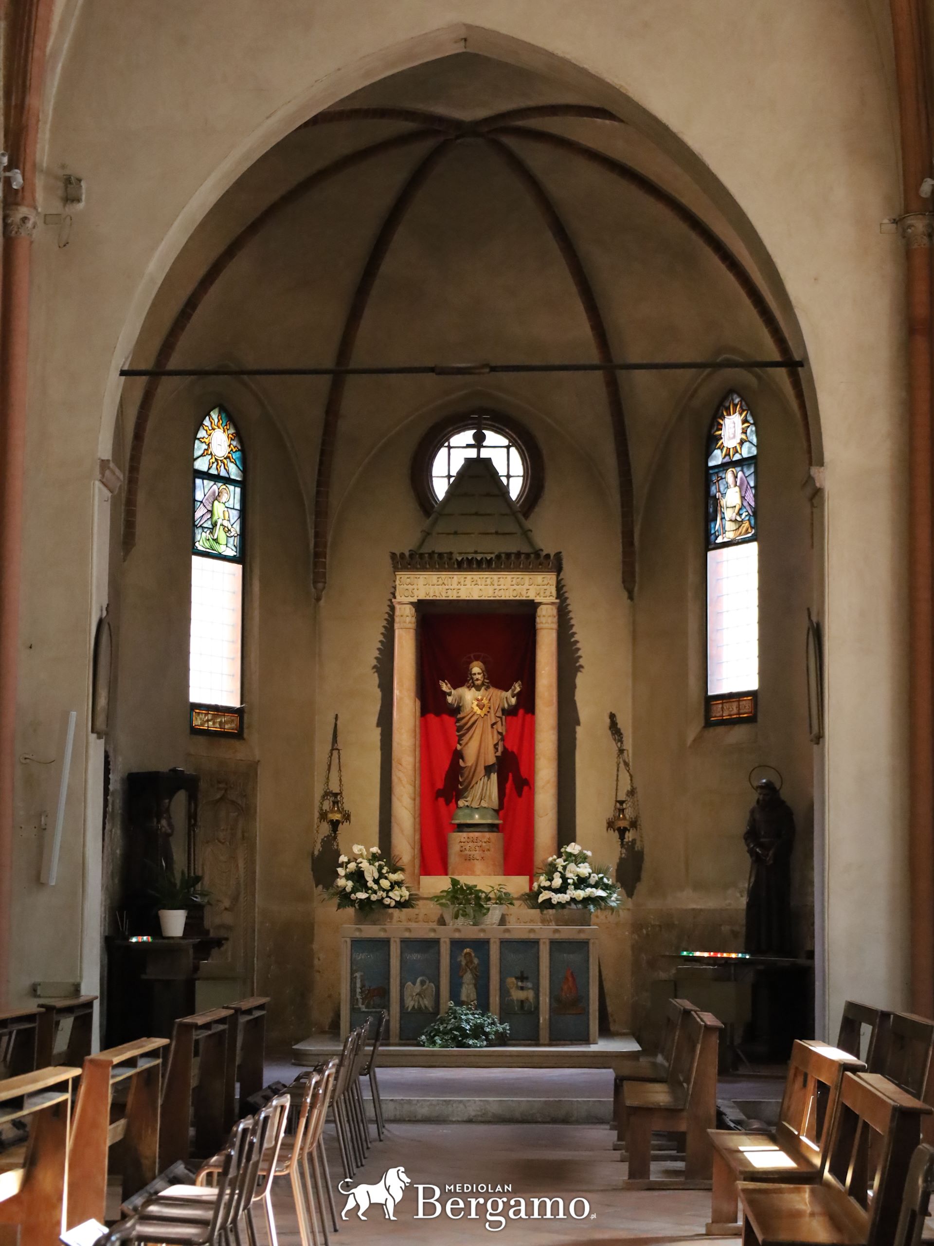 W spandrelach sklepienia znajdują się wizerunki Dziewicy Maryi, św. Ambrożego, św. Sebastiana i św. Bernardyna ze Sieny.