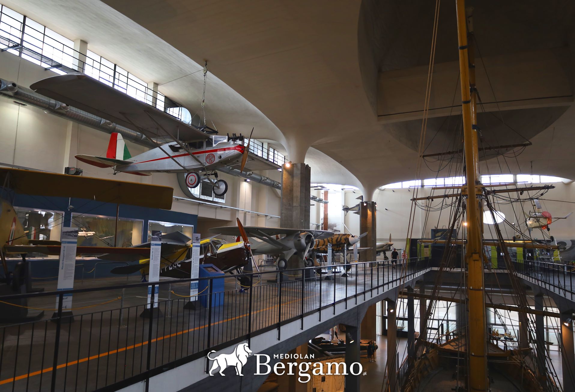 Jest tu komputer Olivetti Programma 101, lokomotywa GR 552 036, oryginalny zabytkowy tramwaj jaki wciąż kursuje po szynach w Mediolanie, model rakiety Vega VV01, żaglowiec EbeSchooner, statek oceaniczny Conte Biancamano, a także na przykład ubrania astronautów i kosmonautów z ISS, księżycowa skała, teleskop z 1882 roku, samolot Macchi MC 205 V z czasów II wojny światowej.