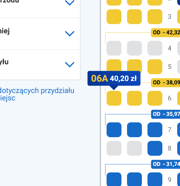 Za miejsce w pierwszym rzędzie przy oknie 01A trzeba w tym wypadku zapłacić 74,06 PLN w przypadku miejsca w środku 01B 71,95 PLN. W rzędzie 6, miejsce A kosztowało nas 40,20 PLN, miejsce B 38,09 PLN. Różnica nie wydaje się duża, ale wbrew pozorom może mocno doładować portfel Ryanaira w 2026 roku.