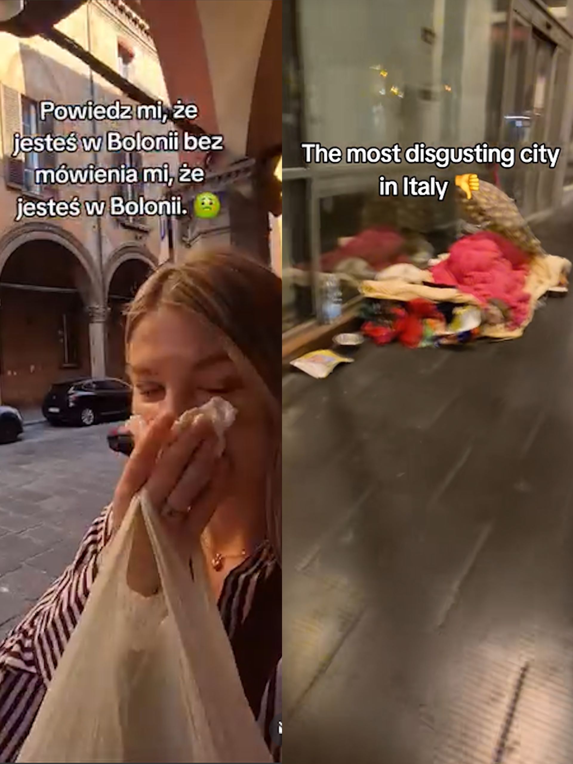 „Chwila przerwy od zwiedzania najgorszego miasta we Włoszech. 👎 Bolonia niestety jest bardzo brudna, zaniedbana, wszędzie śmierdzi moczem, a przypomnę, że zwiedzałam samo centrum” – dodała w innym poście opisującym zwiedzanie Bolonii