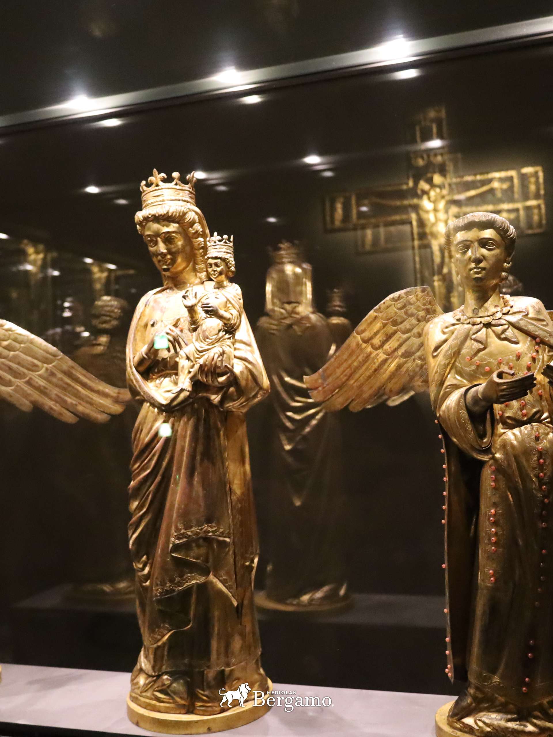 Pierwsze dwie sekcje przez jakie przechodzi się zwiedzając Wielkie Muzeum Katedralne w Mediolanie to Skarbiec (Tesoro) oraz pokoje z rzeźbami. Skarbiec katedralny został przeniesiony tutaj dopiero w 2013 roku, będziecie mogli tutaj podziwiać przedmioty liturgiczne i religijne używane w katedrze od V wieku (sic!). Krzyże procesyjne, Ewangeliarz z elementami z 1024 roku, krzyż kapitulny z XVI wieku, oraz pozłacane rzeźby i inne kosztowne eksponaty.