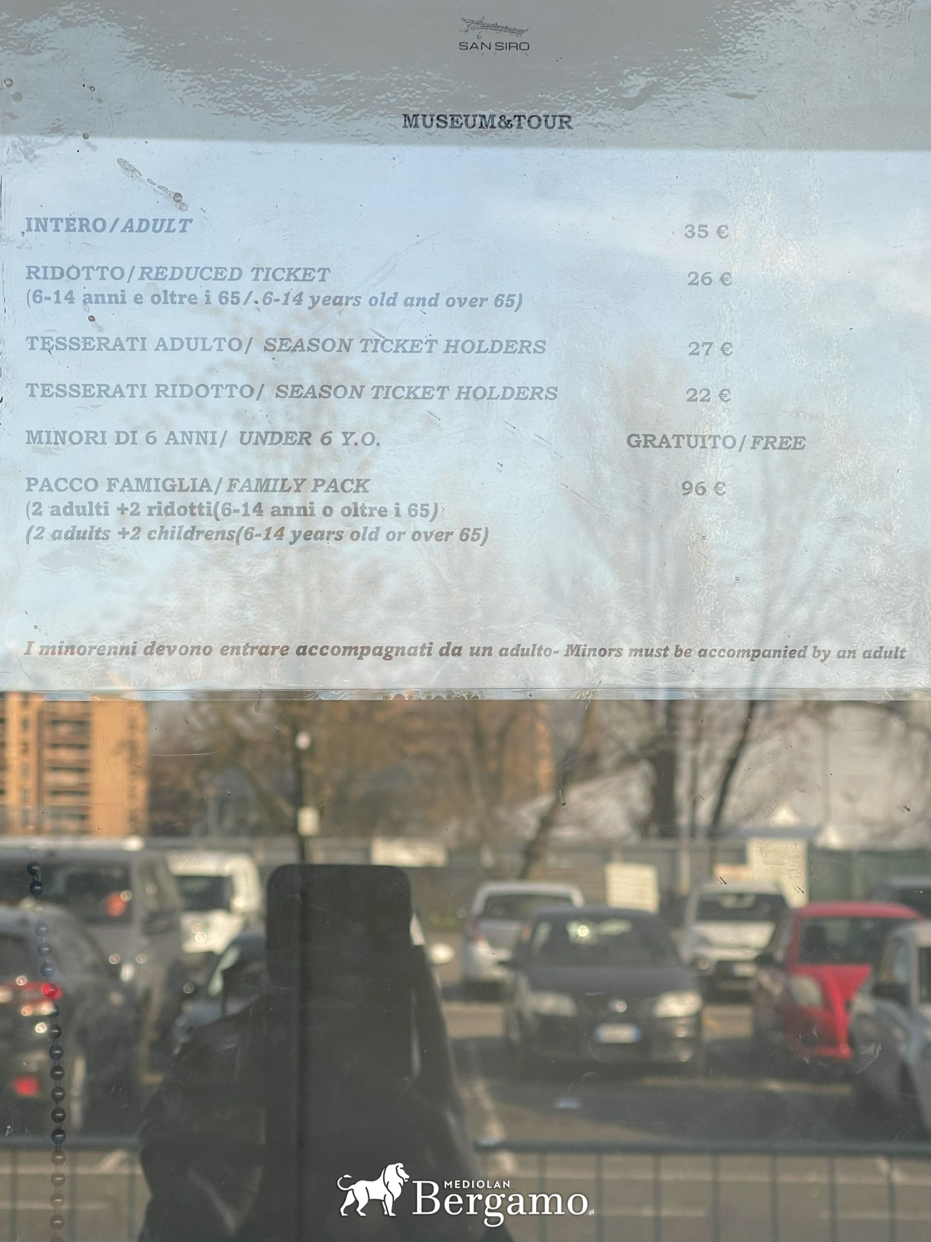 Zwiedzanie muzeum i zwiedzanie stadionu to wycieczka z przewodnikiem w języku włoskim lub języku angielskim. Jeśli korzystacie z pośredników, być może jakiś pośrednik ma niższą cenę, jeśli jest wyższa – nigdy nie kupujcie.